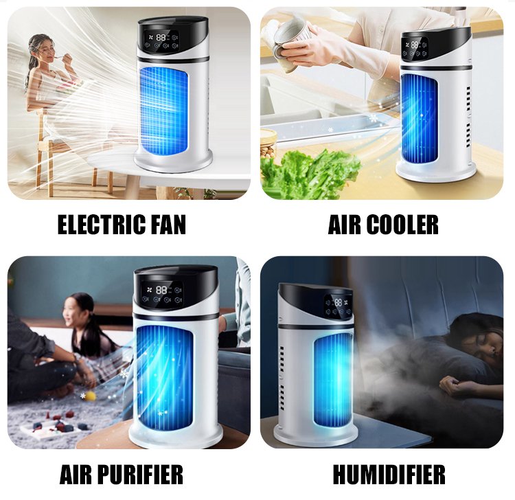 Quiet, compact air cooler with mist humidifier function